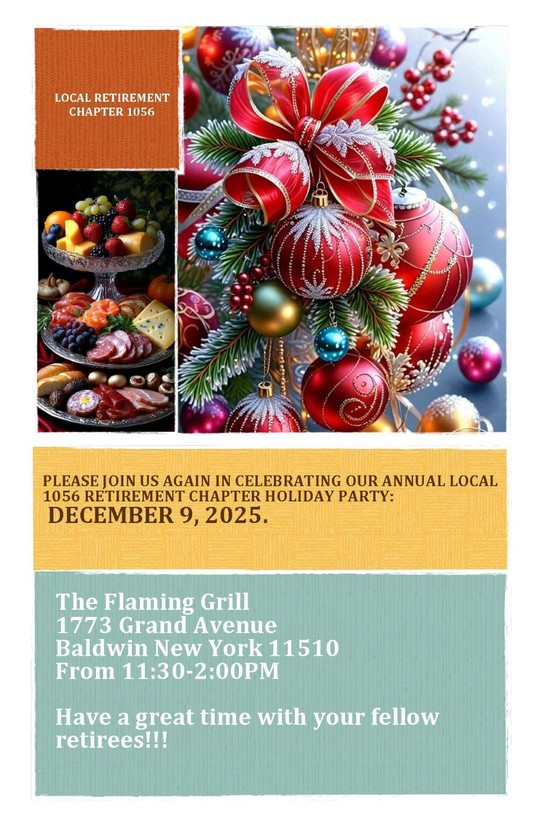 The Chapter dues are separate from Local 1056 dues. Please don’t send your Local 1056 dues to the Retiree Chapter or send Chapter Dues to the Local.
